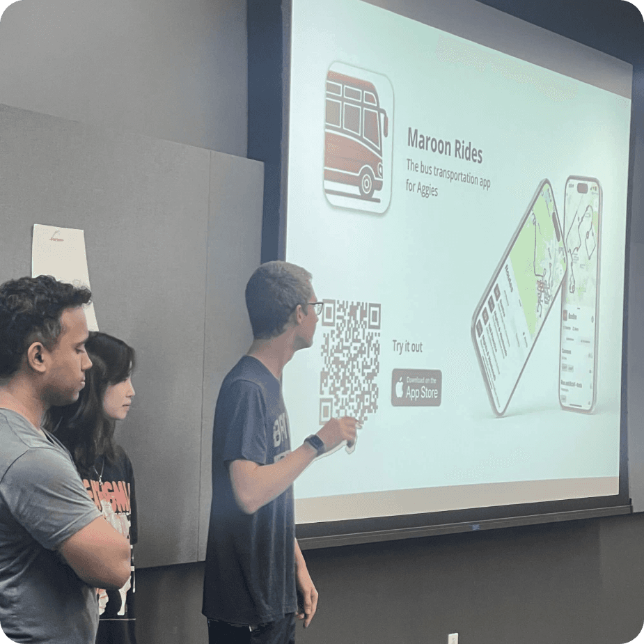 Our app was originally an Aggie Coding Club project, and we return to show incoming student members the reward of seeing a project through.