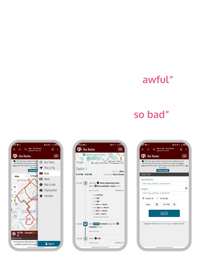 I collected several opinions from students by going through Reddit threads about the TAMU app and noting negative comments from my fellow classmates.