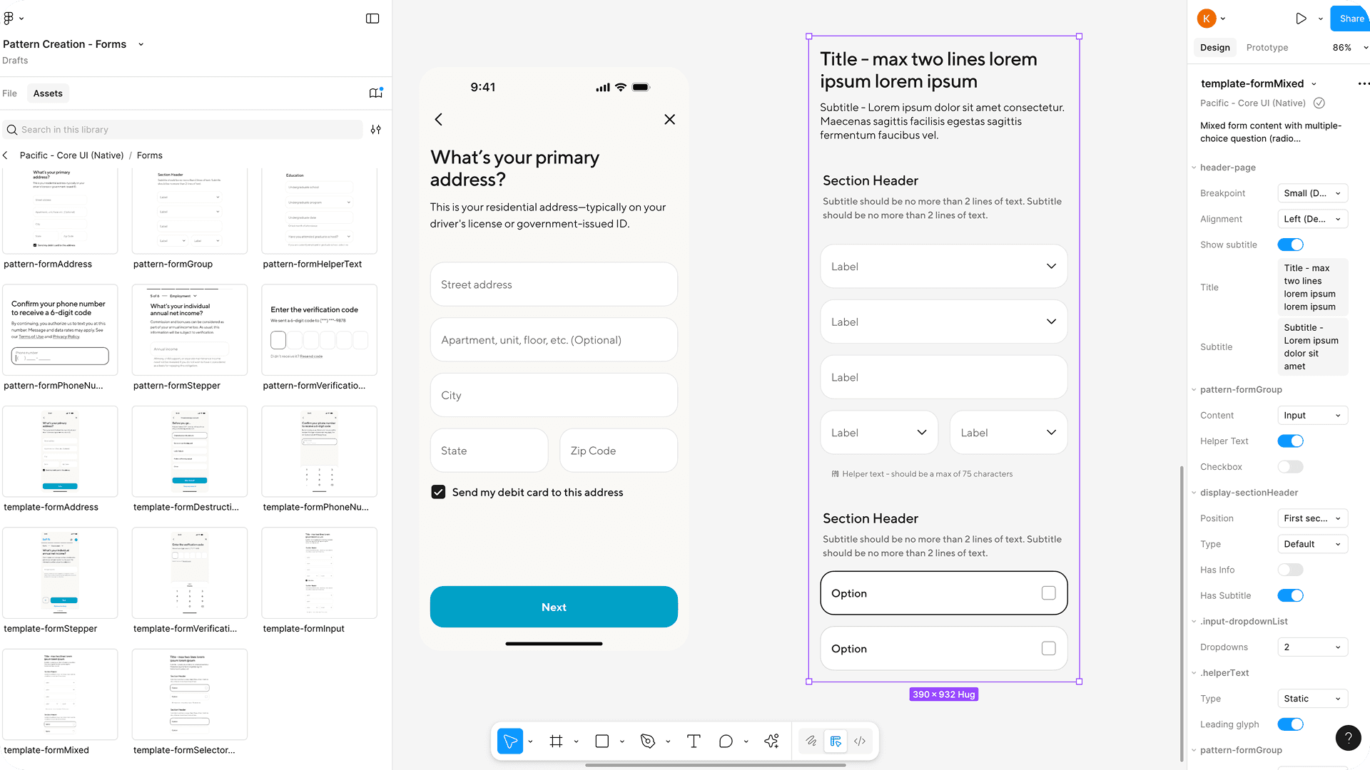 I designed a small library of form pattern components that product designers can access in their Figma files. This approach helps designers design and iterate faster, and consistently across multiple product teams.